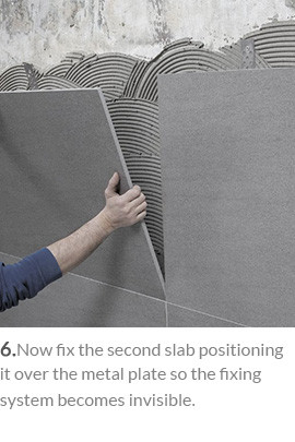 Before installation, we should confirm that the ground already has the installation conditions, then use equipment to make the horizontal line and the dividing line of construction. After the preparations have been made, place the proper amount of cement mortar (or special ceramic tile adhesive) on the ground and stick the panel to a fixed position on cement mortar (or special ceramic tile). At last, using a special cloth to cover surface to prevent pollution. The total solidify time is 2-3 days.