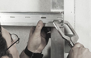 The rising profiles will be successively fixed in place with the horizontal profiles drilled and shaped so that the stresses due to the action of the wind doesn't stress the clips.