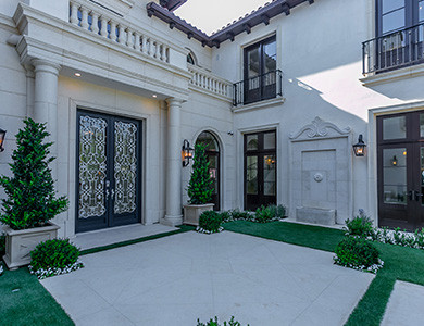 Located in Benedict Canyon, Beverly Hills. The 11,700 square foot Tuscan-style residence captures views of the canyon and the surrounding hills. This luxury two-story new residence comprises of 7 bedrooms and 8 bathrooms with a basement devoted to a home theater, sauna with steam shower, bar, and play area. The second story covered patio, with the view of the infinity pool, alongside the landscaped yard. Featured with a pavilion, river, and multiple fountain walls; creates an exceptional moment of outdoor seating.