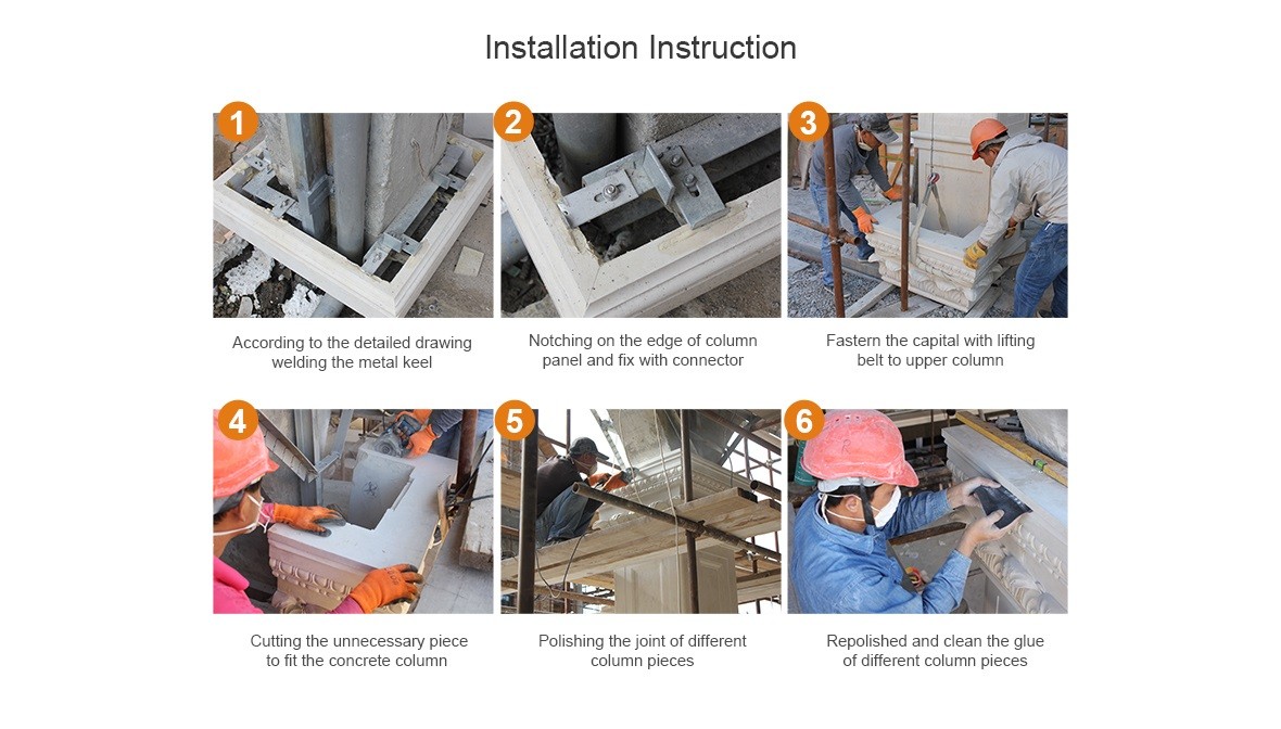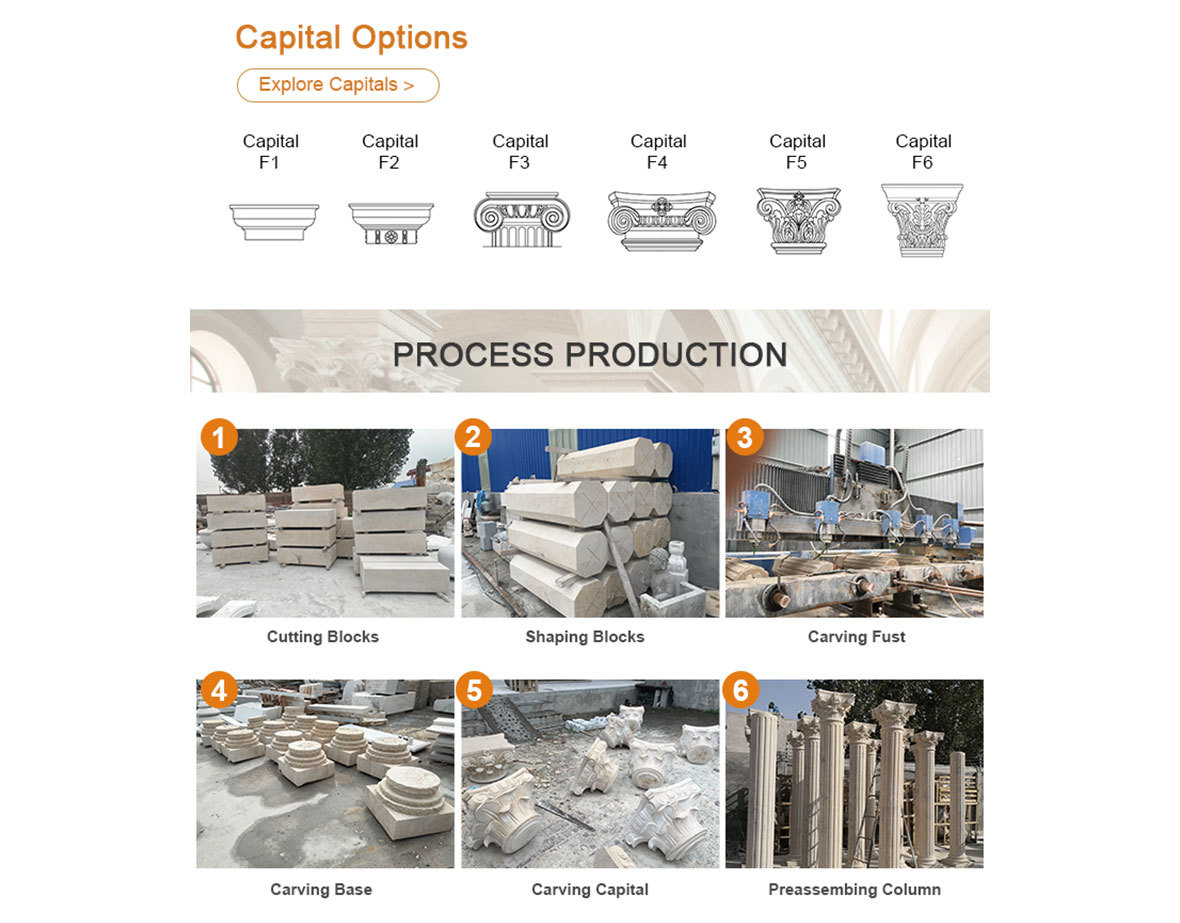 PFM Project Round Roman Column Design Natural Stone White Marble Pillars