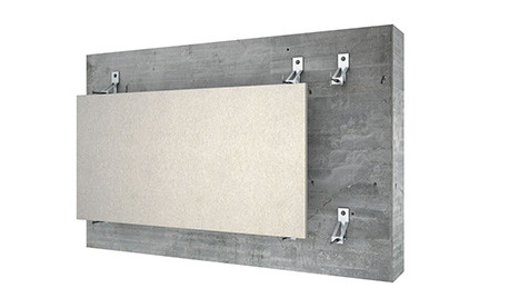 Drilling hole in the concrete wall directly and installing the hook in the hole. Then, the pin is inserted the perforations on the side of the slab and connected to the hardware on the wall.