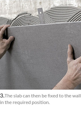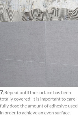 Before installation, we should confirm that the ground already has the installation conditions, then use equipment to make the horizontal line and the dividing line of construction. After the preparations have been made, place the proper amount of cement mortar (or special ceramic tile adhesive) on the ground and stick the panel to a fixed position on cement mortar (or special ceramic tile). At last, using a special cloth to cover surface to prevent pollution. The total solidify time is 2-3 days.