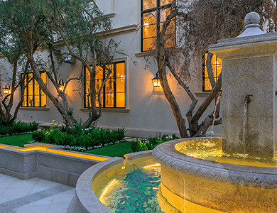 Located in Benedict Canyon, Beverly Hills. The 11,700 square foot Tuscan-style residence captures views of the canyon and the surrounding hills. This luxury two-story new residence comprises of 7 bedrooms and 8 bathrooms with a basement devoted to a home theater, sauna with steam shower, bar, and play area. The second story covered patio, with the view of the infinity pool, alongside the landscaped yard. Featured with a pavilion, river, and multiple fountain walls; creates an exceptional moment of outdoor seating.