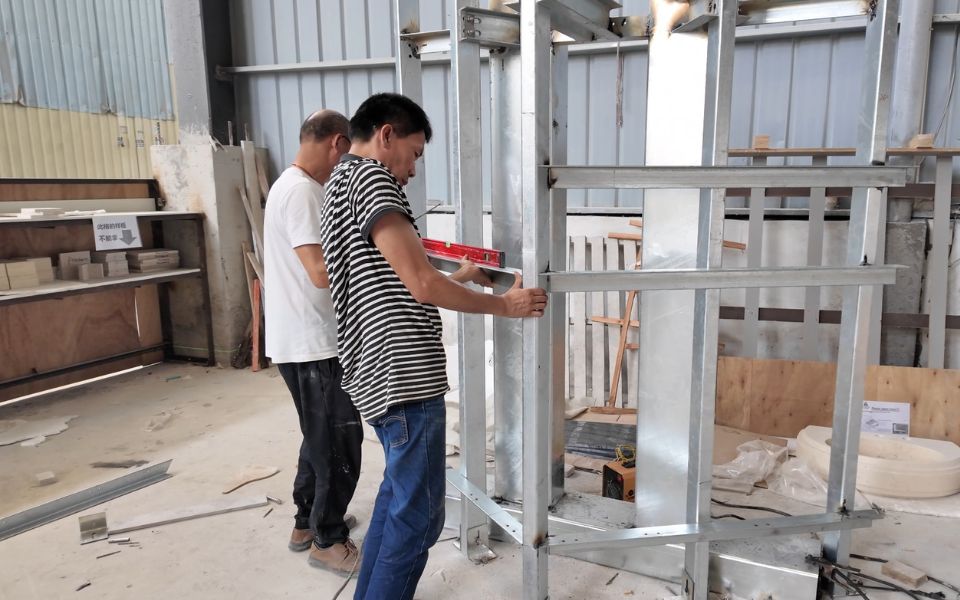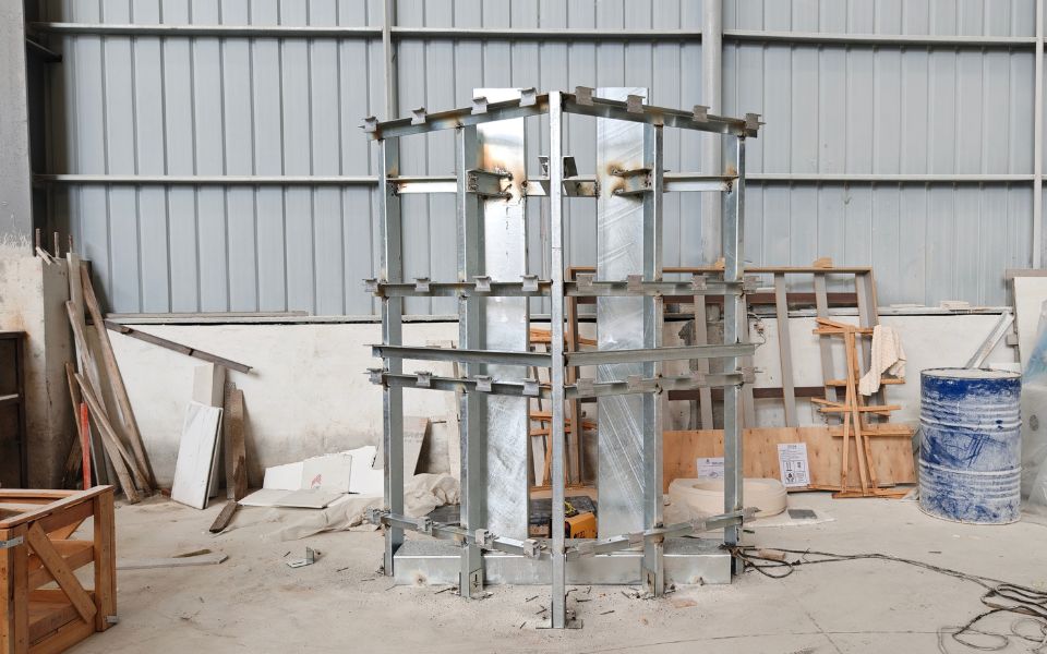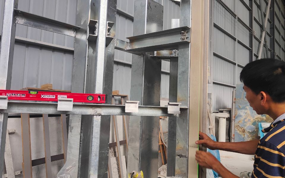 We conducted a pull-out test on-site and built a 1:1 full-scale mock-up wall at the factory. These tests, performed under real-world installation conditions, validated the mechanical performance and safety of the dry-hanging system for a high-rise application. They also ensured that the final design could be implemented with confidence.