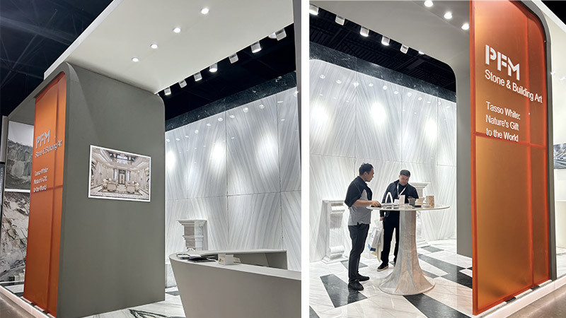 At the exhibition, our Tasso White Marble made a grand appearance. With its pure and elegant texture and distinctive natural veining, it attracted the attention of numerous designers, contractors, and partners. Visitors had the opportunity to experience the purity and elegance of this natural stone up close