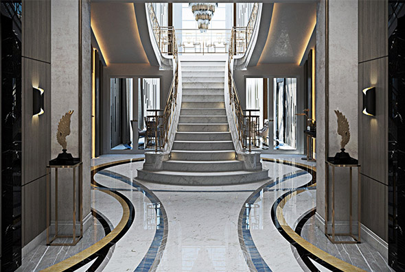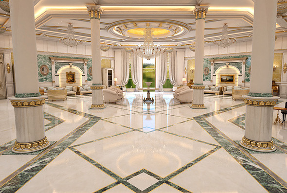 3) Interior wall and floor marble